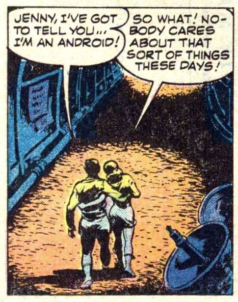 talesfromweirdland: “Jenny, I’ve got to tell you… I’m an android!” —”So what! Nobody cares about that sort of things these days!” Share this: Click to share on X (Opens in new window) X Click to share on Facebook (Opens in new window) Facebook Click to share on Tumblr (Opens in new window) Tumblr Like Loading... Related
