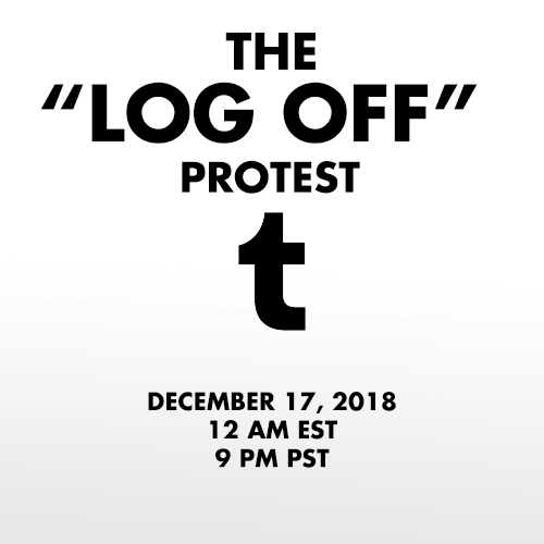 To protest, log off of your Tumblr account for the entirety of December 17th. Log off at 12 am EST or 9PM PST and stay off for 24 hours. Don’t post. Don’t log on. Don’t even visit the website. Don’t give them that sweet ad revenue.